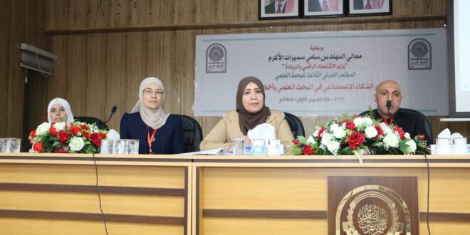 حيث ترأس محور البحث العلمي والتعليم العالي الدكتور ضرار القضاة نوقشت فيها ورقة عمل مشتركة بين الدكتور ضرار القضاة مع بشاير فلبمان بعنوان ” تحديات توظيف طلبة الدراسات العليا للذكاء الاصطناعي في البحث العلمي من وجهة نظرهم: دراسة نوعية”، فيما قدم كل من ازدهار داغر، وعاصم الزغل، وعبدالله الزغل ورقة عمل مشتركة بعنوان ” دور الذكاء الاصطناعي في البحث العلمي وأخلاقياته: دراسة تحليلية معاصرة”، في حين استعرضت كل من أثير الكوري وعلي السندي وأيمن معمر ورقة عمل بعنوان ” واقع استخدام الذكاء الاصطناعي في البحث العلمي من وجهة نظر طلبة جامعات البحرين “، ومن خلال ورقة مشتركة قدم كل من إسلام الشديفات، ونهيل الشديفات، وملك حامد مسلم، ورقة عمل بعنوان ” دور الذكاء الاصطناعي في تطوير البحث العلمي “، أما الورقة الأخيرة قدمتها هبة أبو عيادة، وأنس العضيبات ورقة عمل بعنوان “A Proposed Code of Ethics for Higher Education Students on the Use of Artificial Intelligence”.